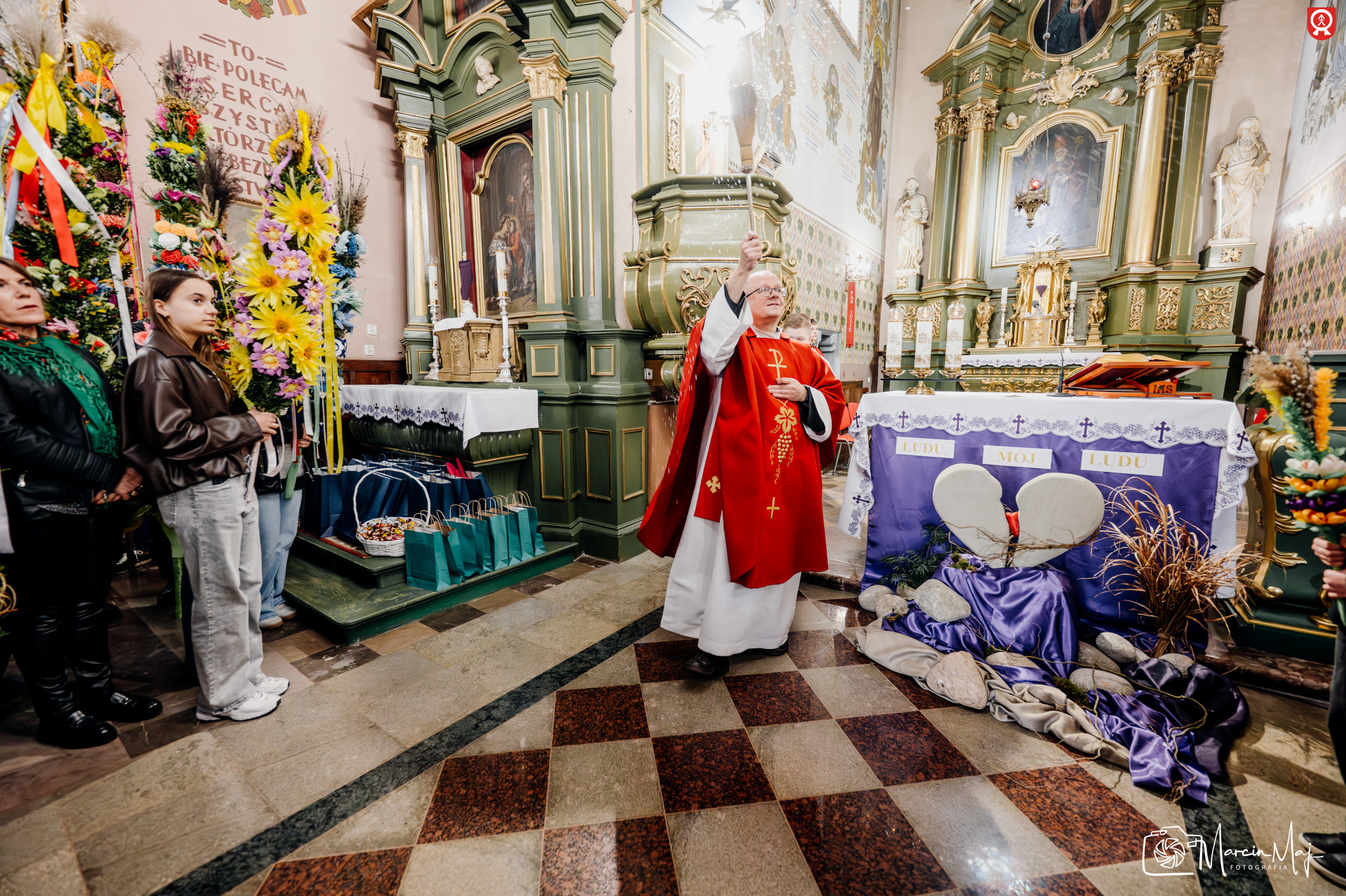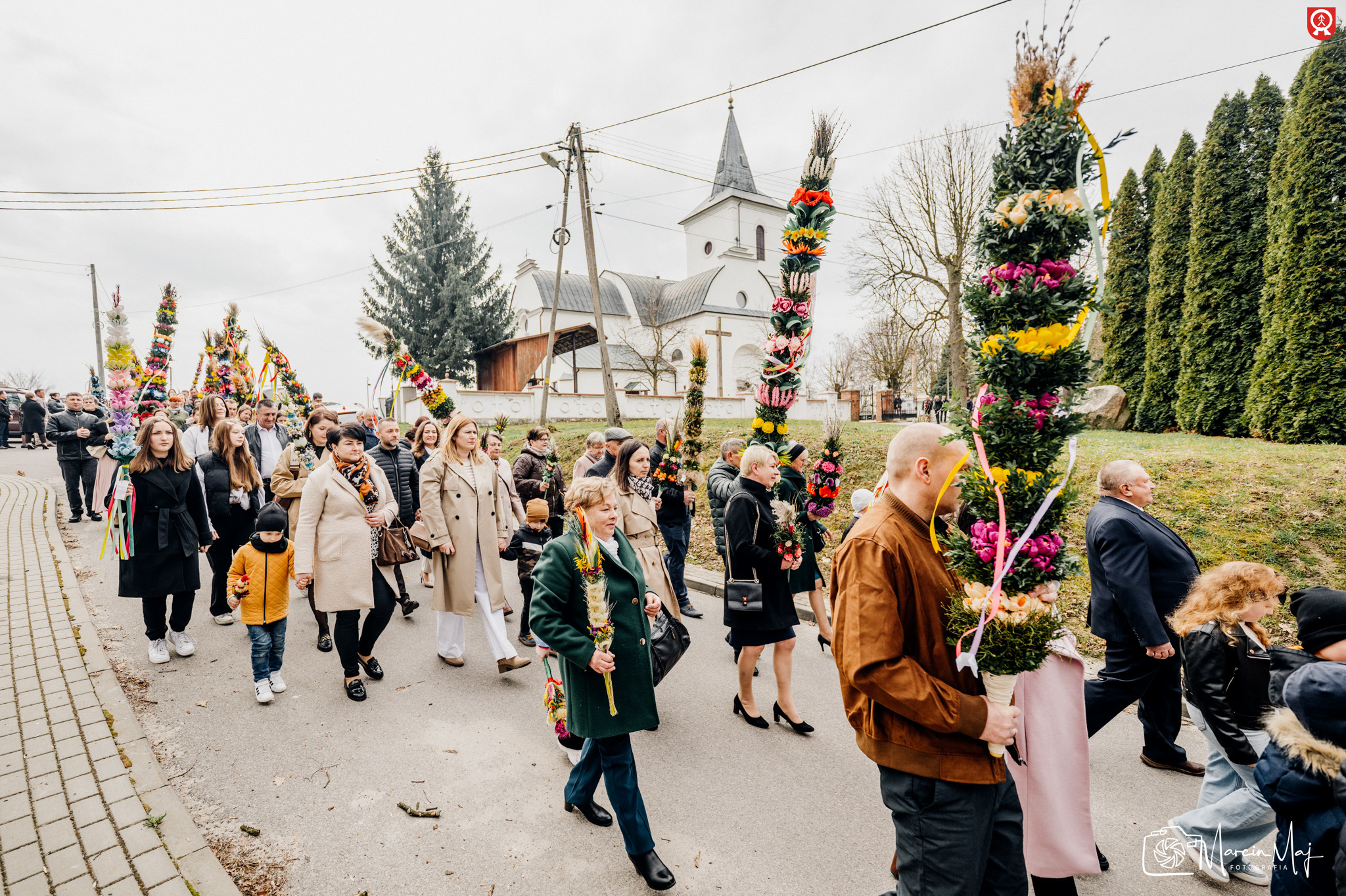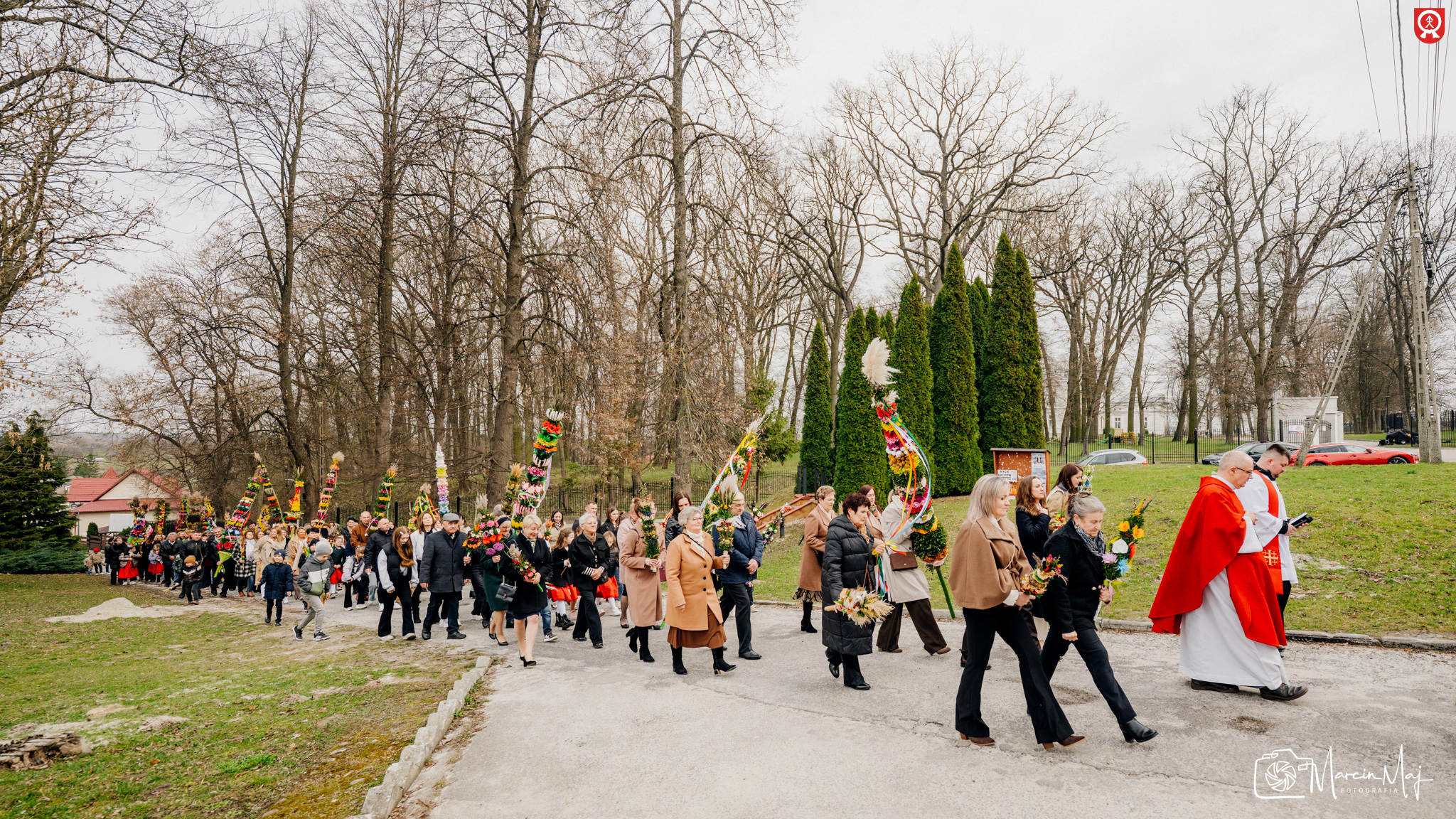 W uroczystej, procesyjnej atmosferze udaliśmy się do kościoła, gdzie ksiądz Dziekan uroczyście poświęcił wszystkie palmy. To był piękny moment wspólnoty i pielęgnowania Naszych Tradycji.