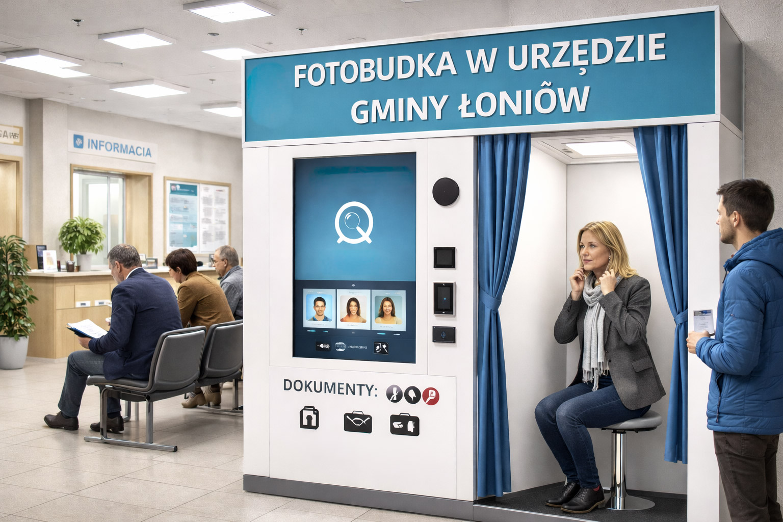 Informujemy, że w Urzędzie Gminy Łoniów dostępna jest nowoczesna fotobudka umożliwiająca wykonanie zdjęć do różnego rodzaju dokumentów urzędowych, w tym m.in.:
