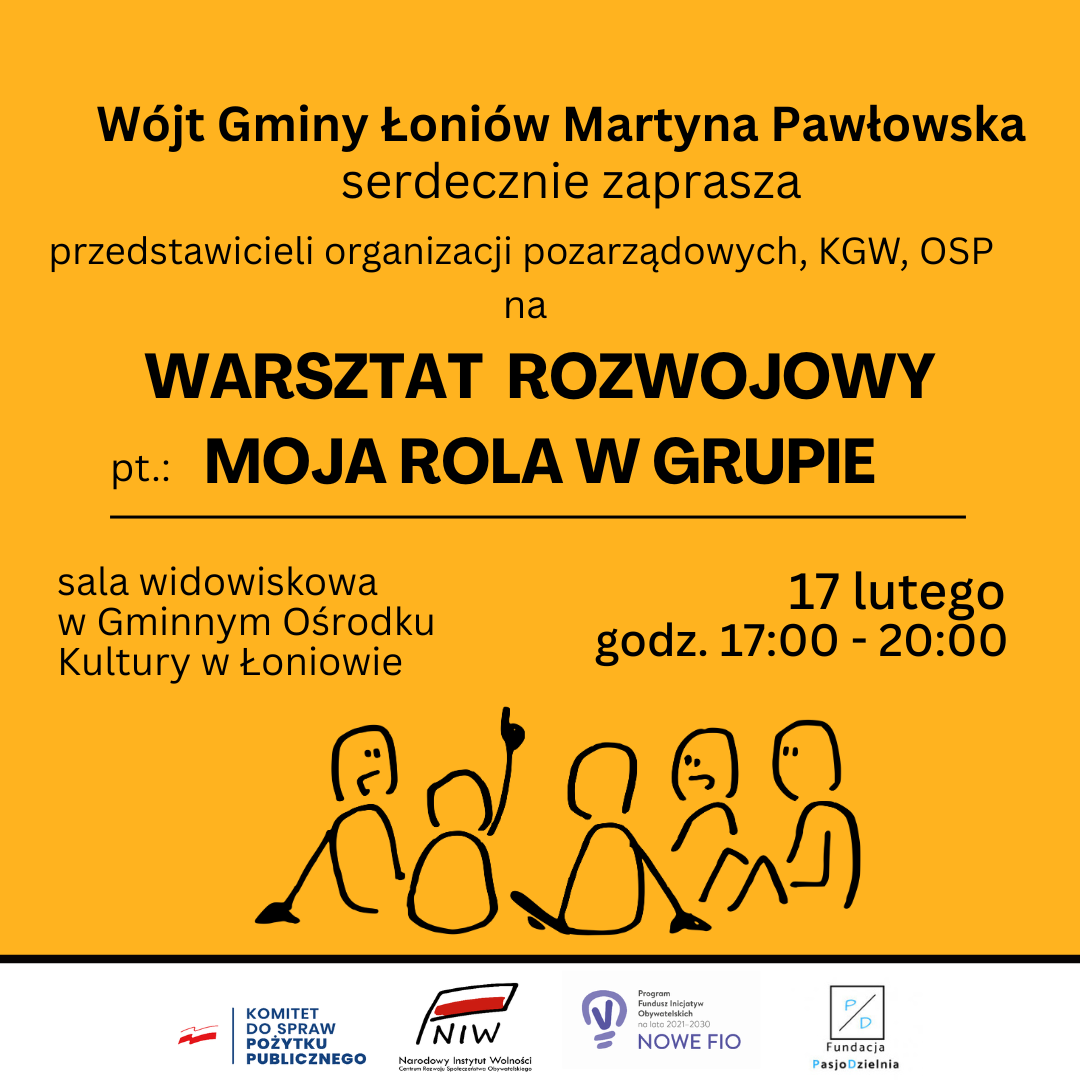 Zapraszamy na warsztaty rozwojowe dla organizacji pozarządowych z terenu gminy Łoniów pt.: „Moja rola w grupie”